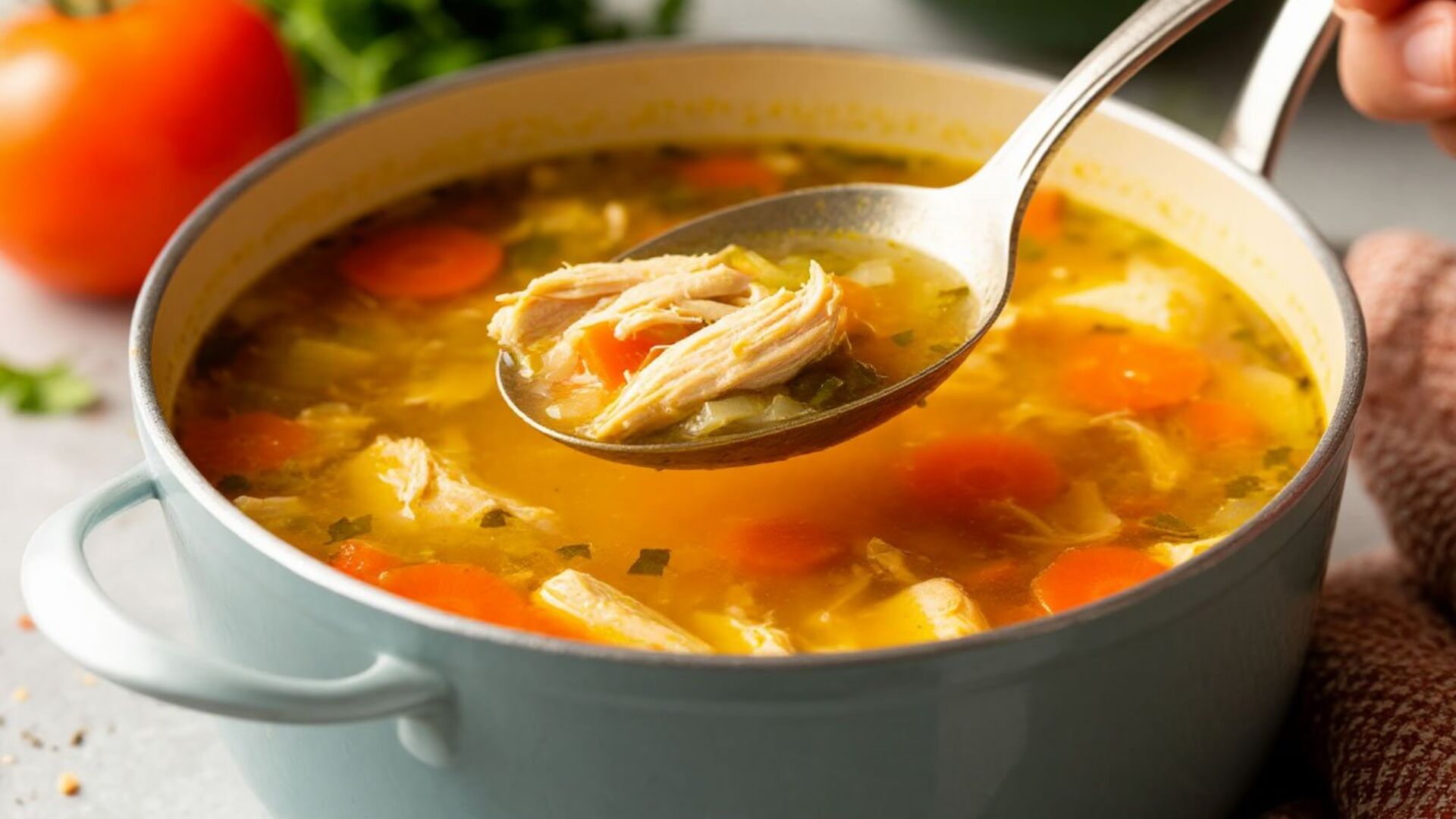 Вкусный куриный суп редко бывает случаен: за чистым бульоном и глубоким вкусом всегда стоит точный прием. В профессиональной кухне один из таких секретов — лимонный сок, добавленный в самом конце. Он не делает суп кислым, а подчеркивает вкус курицы и делает бульон ярче и прозрачнее.