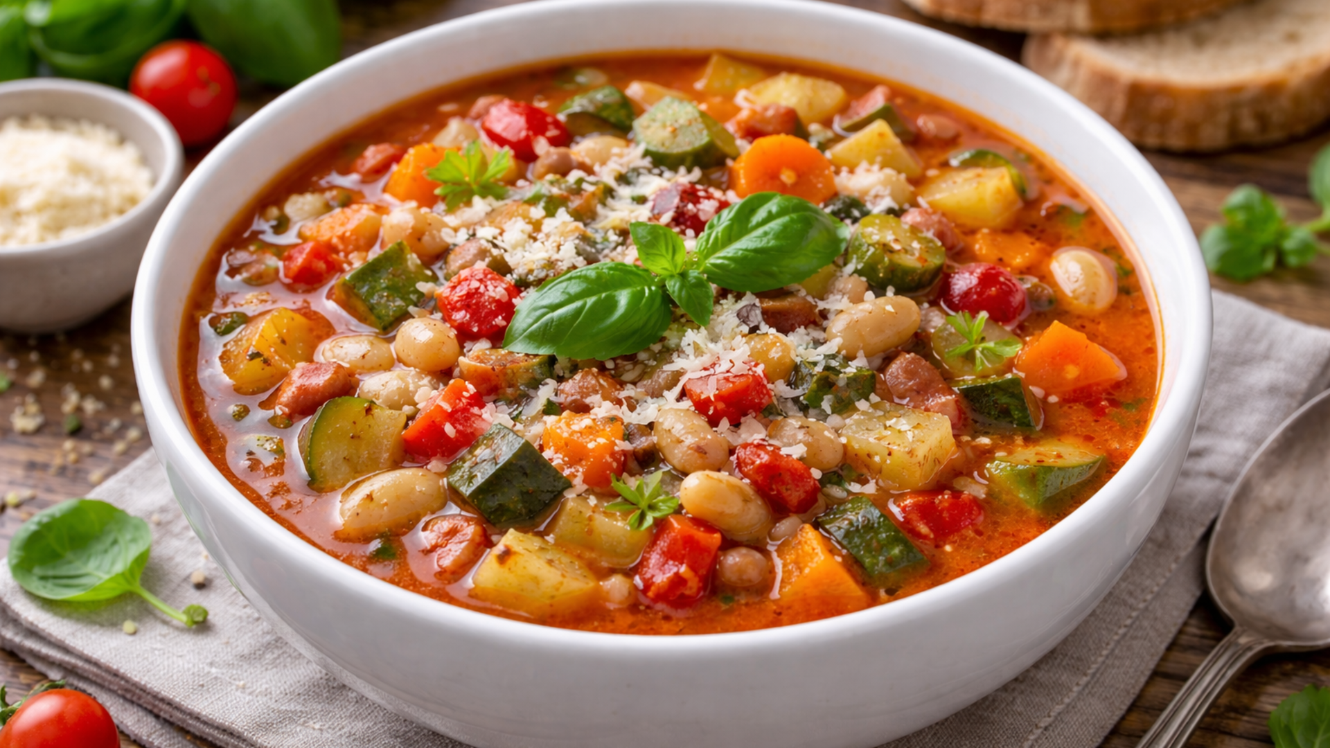 Суп минестроне я люблю за его легкость и пользу, ведь в нем много овощей и никакой тяжести для желудка. Такой суп хорошо подходит для обеда или ужина, когда хочется поесть вкусно и при этом не переедать. А еще он выручает, если нужно использовать сезонные овощи без строгих рамок.