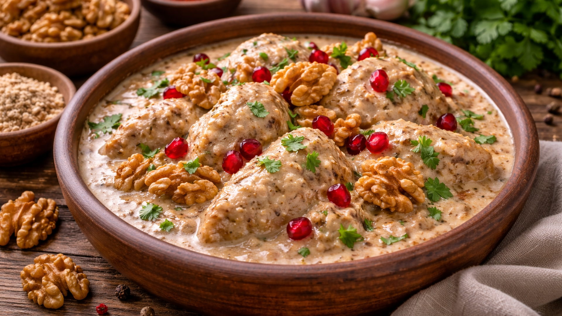 Сациви из курицы я готовлю, когда хочется удивить домашних насыщенным вкусом без сложных техник. Это блюдо хорошо тем, что его можно сделать заранее, а на следующий день оно становится только вкуснее. Ореховый соус делает курицу сочной и сытной, даже без жарки.