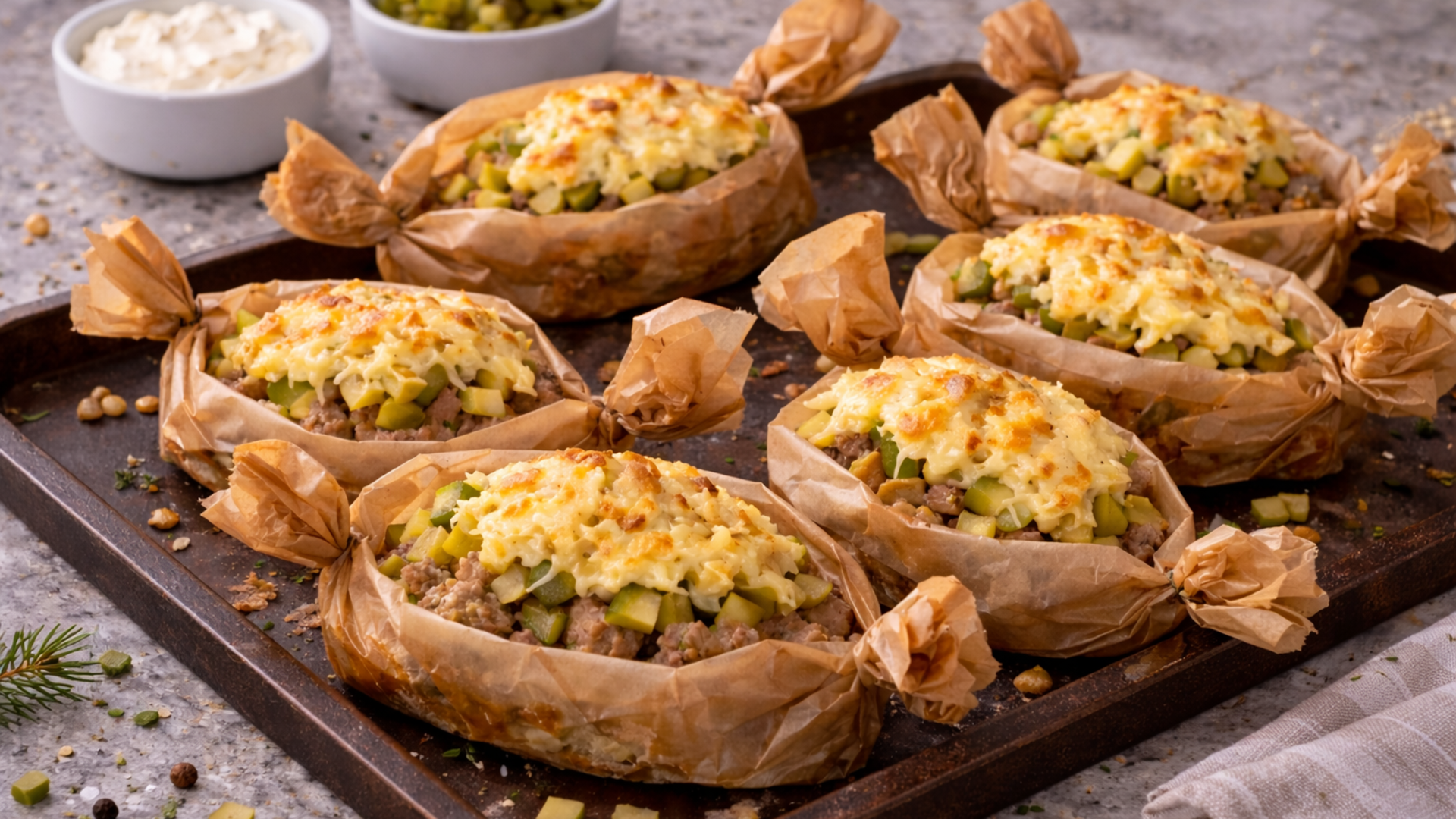 Когда на праздничный стол хочется подать что-то эффектное и сытное, а стоять у плиты половину дня — не в ваших планах, этот рецепт придет на подмогу. Порционное горячее можно приготовить прямо в пергаменте или фольге. Выглядит это аккуратно, а вкус — как у лучших праздничных блюд. А секрет в начинке — сочном фарше с добавкой, о котором многие забывают.