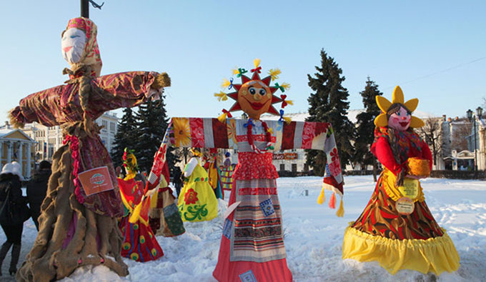 Широкая Масленица начинается с выпекания блинов и заканчивается сожжением ряженого чучела – символа зимы. Чучело, воплощающее не только зиму, но и саму смерть, называлось Марена. Сегодня не все знают, что к празднику готовили две Марены. Одну ряженую куклу сжигали в конце масленичной недели, другая же оставалась в доме на весь год. Чучело, предназначающееся для сжигания, делалось в рост человека. «Домашняя» Масленица или Марена была не больше обычной куклы. Она становилась «хозяйкой» семьи, обеспечивающей благополучие в доме. Во время Масленицы «домашняя» Марена выставлялась в окно. Проходя мимо такого дома, люди знали – здесь встречают праздник по-настоящему. Прохожие могли постучаться в дом и поздравить хозяев с Масленицей, получив за это угощенье. Сегодня эти русские традиции Масленицы практически не сохранились, однако, в праздник 2023 мы все так же будем поздравляем друзей и родных веселыми стихами.