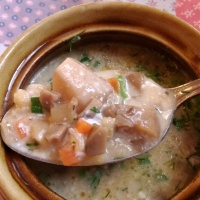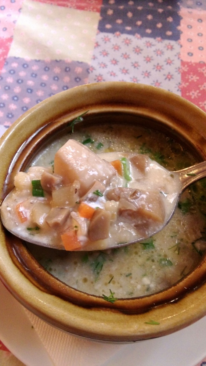 Похлёбка грибная - белые грибы с перловкой (215 руб.) - идеал, невиданный несколько лет. Даже картошка так напиталась, что сама стала не хуже кусков грибов. Чудо.