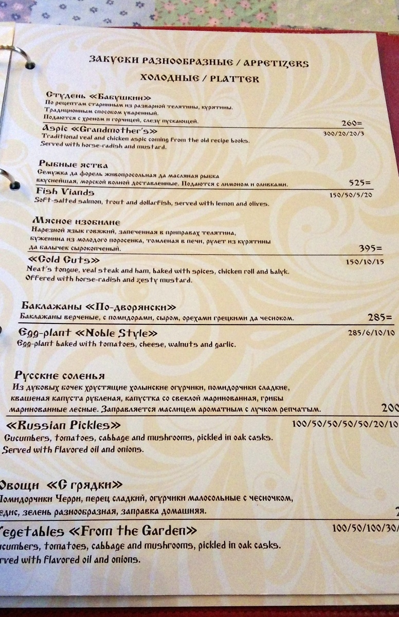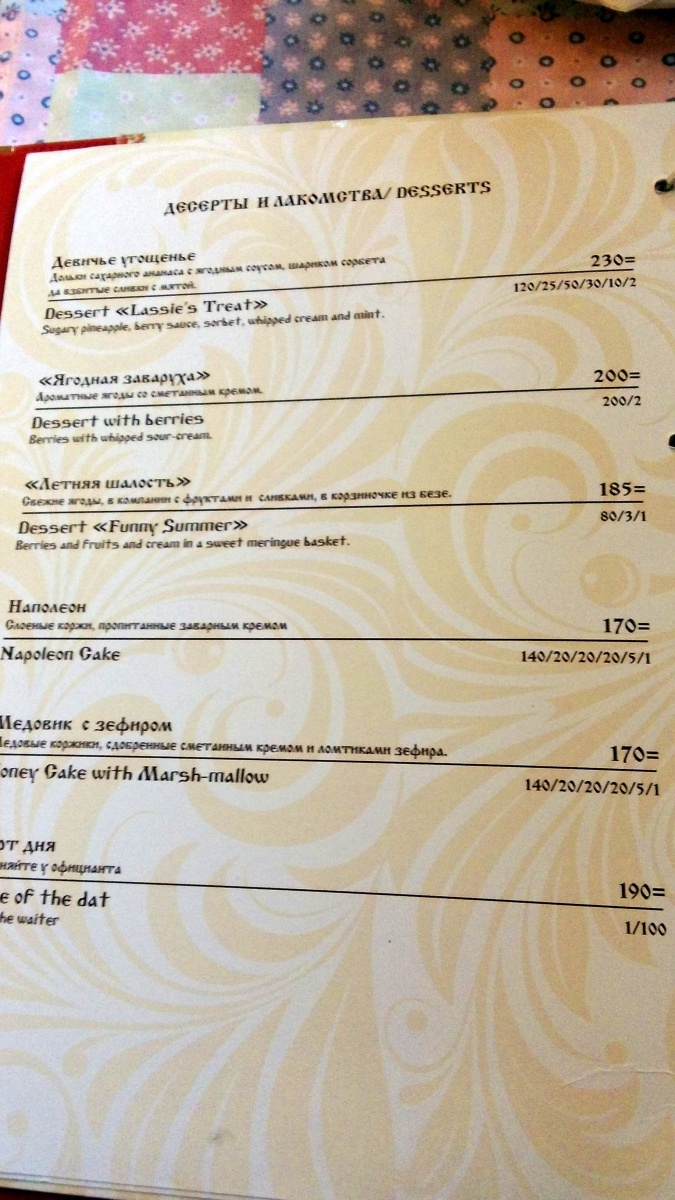 Итого. Когда ехал, мне казалось, это будет больше всего похоже на «Подворье», второго варианта, «послепожарного». Нет. И это «нет», крайне положительное определение. Предпочитаю настроение и эмоции, правду в тарелках, а не нагромождение «внешних красивостей». Весёлые песенки, настроение, нет перебора в «отвешивании хохломы». Место не такое, куда надо стремиться специально. В ресторане нет какой-то уникальности. Признаю и отмечаю. Даже сервис – исполнителен и четок, но вот хочется немного большего гостеприимства.